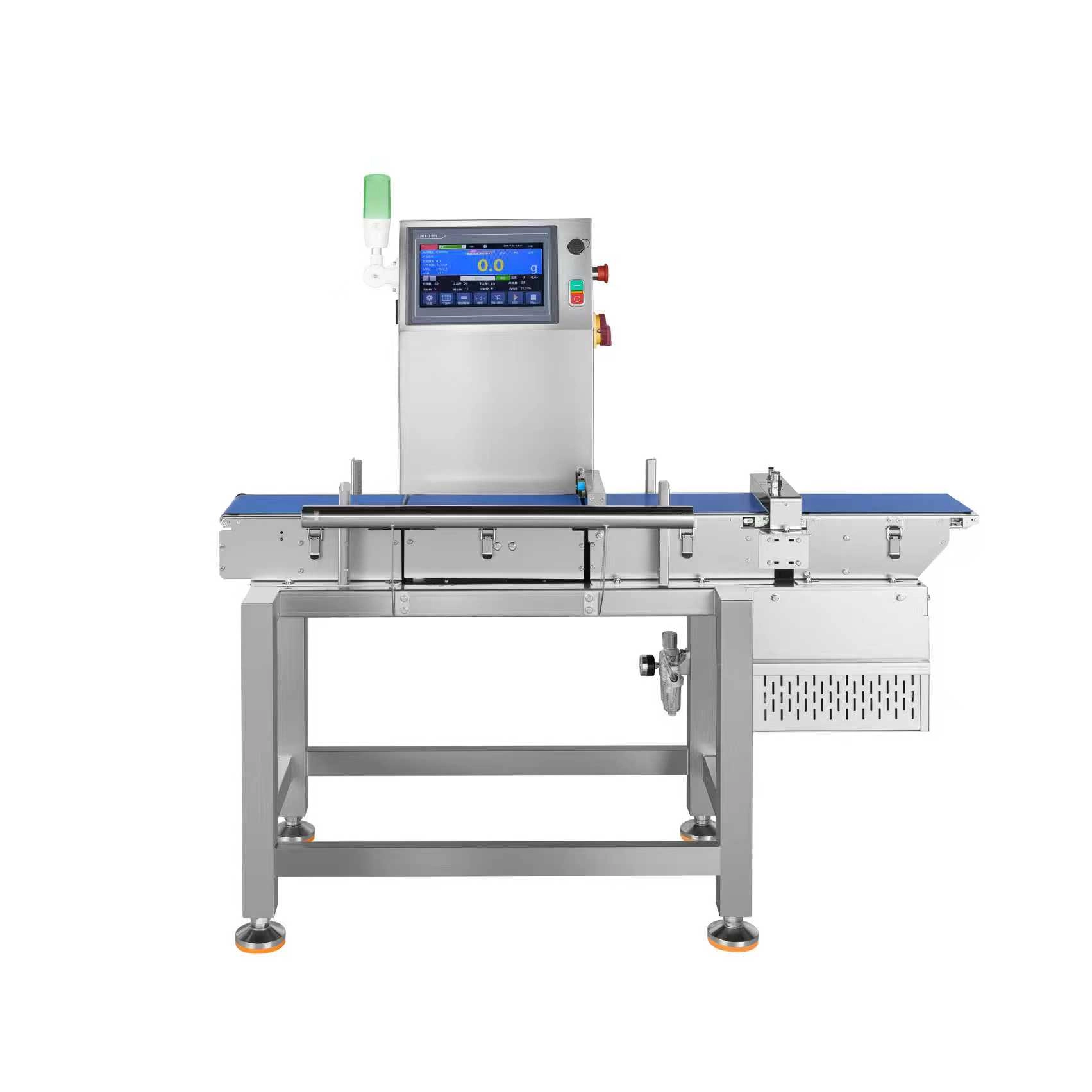 Diese Kontrollwaage mit nach unten gerichteter Luftstoßunterdrückung eignet sich für kleine, leichte, sich schnell bewegende und weiche Blattprodukte. Es kann Produktgewichtsabweichungen in Echtzeit prüfen und fehlende Artikel oder Anhänge identifizieren. Es stellt sicher, dass die Produkte den Gewichtsstandards entsprechen, erleichtert den Rückruf von Artikeln mit Untergewicht und vermeidet unnötige Kosten für Artikel mit Übergewicht.