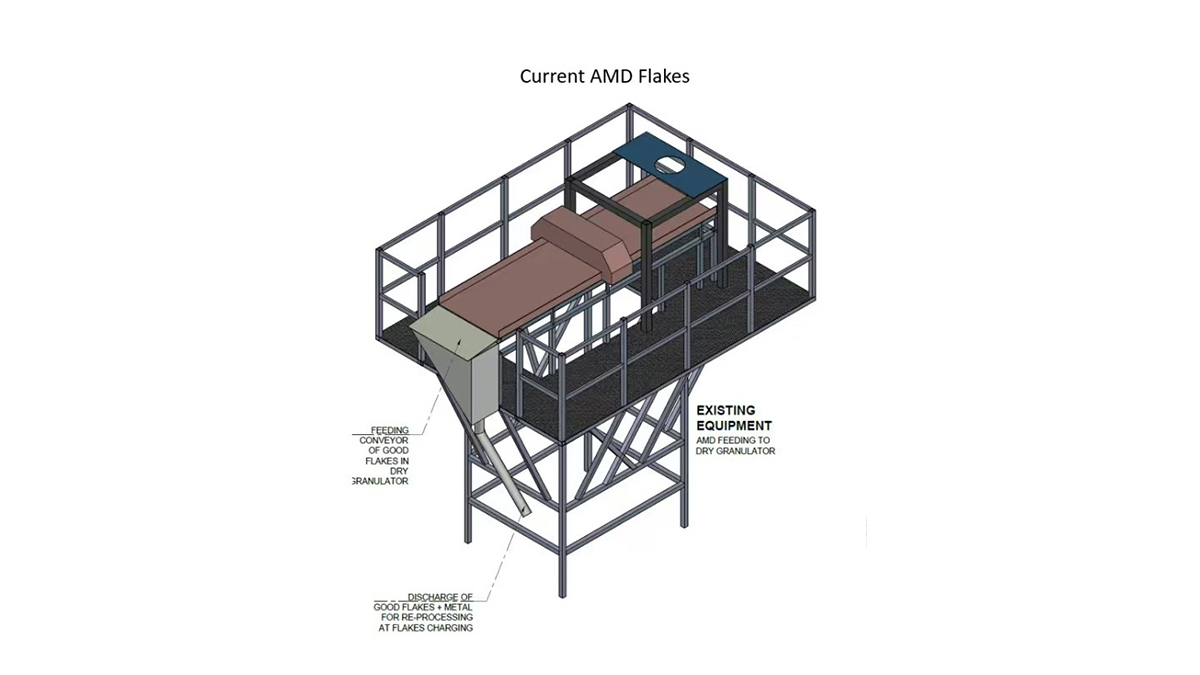 Die erste Herausforderung bestand darin, a zu integrieren Metalldetektor in eine bestehende PET-Kunststoff-Produktionslinie integriert. PET-Kunststoffflocken aus vorgelagerten Prozessen enthalten häufig metallische Verunreinigungen, die genau erkannt und entfernt werden müssen. Nach der Aussortierung durch das Metalldetektionssystem wird das gereinigte Material zur weiteren Verarbeitung an nachgeschaltete Pelletieranlagen weitergeleitet. Um eine reibungslose Mittellinienintegration und einen unterbrechungsfreien Materialfluss zu gewährleisten, war ein spezieller Metalldetektor mit verlängerter Länge erforderlich. Die Detektorlänge wurde so konzipiert, dass sie dem Schnittstellenabstand zwischen vor- und nachgeschalteten Geräten entspricht und so eine nahtlose Integration und stabile Produktionsleistung ermöglicht.