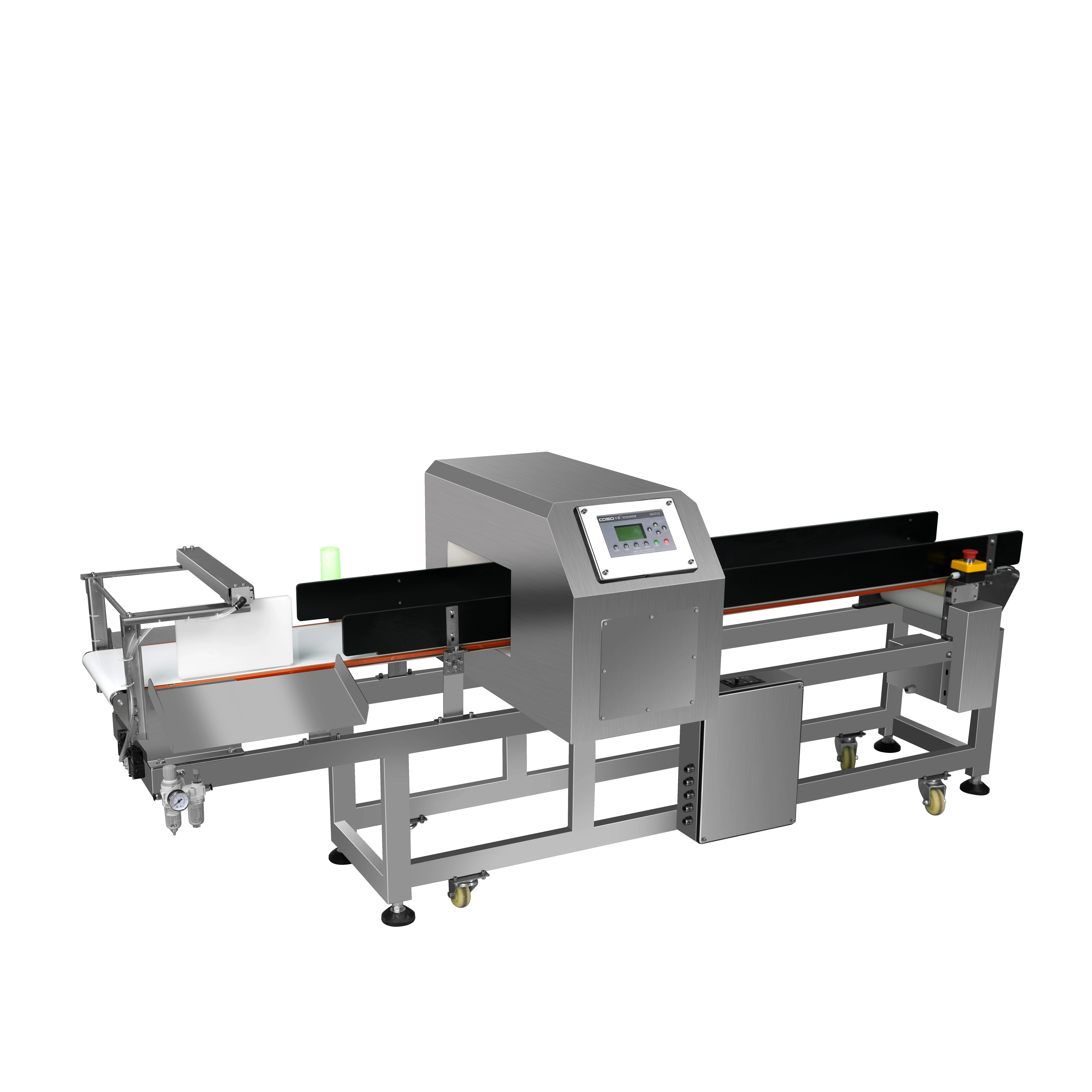 Die Links- und Rechtsausschleusung eignet sich für kleine verpackte Produkte und Hochgeschwindigkeitsproduktionslinien. Es kann mit Metall verunreinigte Produkte unabhängig nach beiden Seiten umleiten und so sicherstellen, dass die Erkennung den kontinuierlichen Produktionsfluss nicht unterbricht.