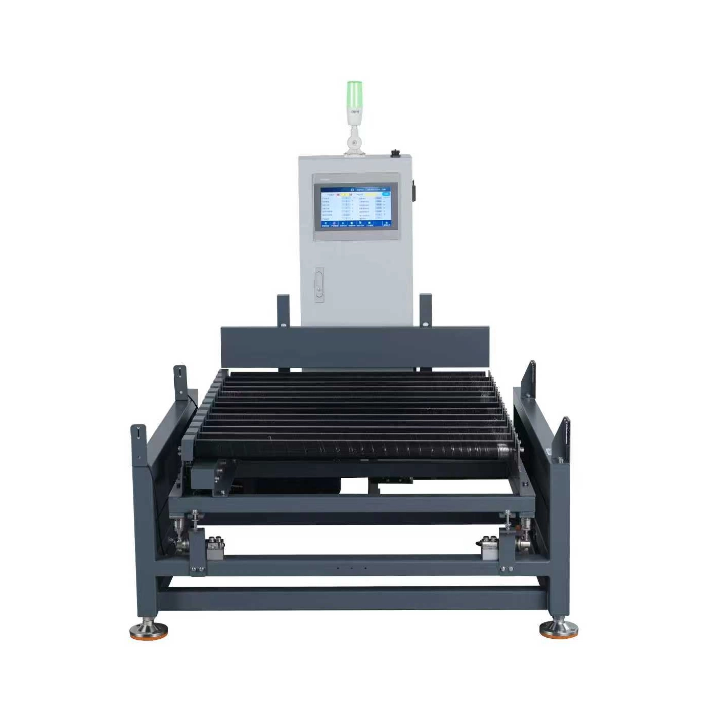 Die Rollenkontrollwaage ist für schwere verpackte Produkte konzipiert, um zu überprüfen, ob das Produktgewicht qualifiziert ist, z. B. um Über- und Untergewicht zu erkennen. Es wird am Ende der Produktionslinie installiert.